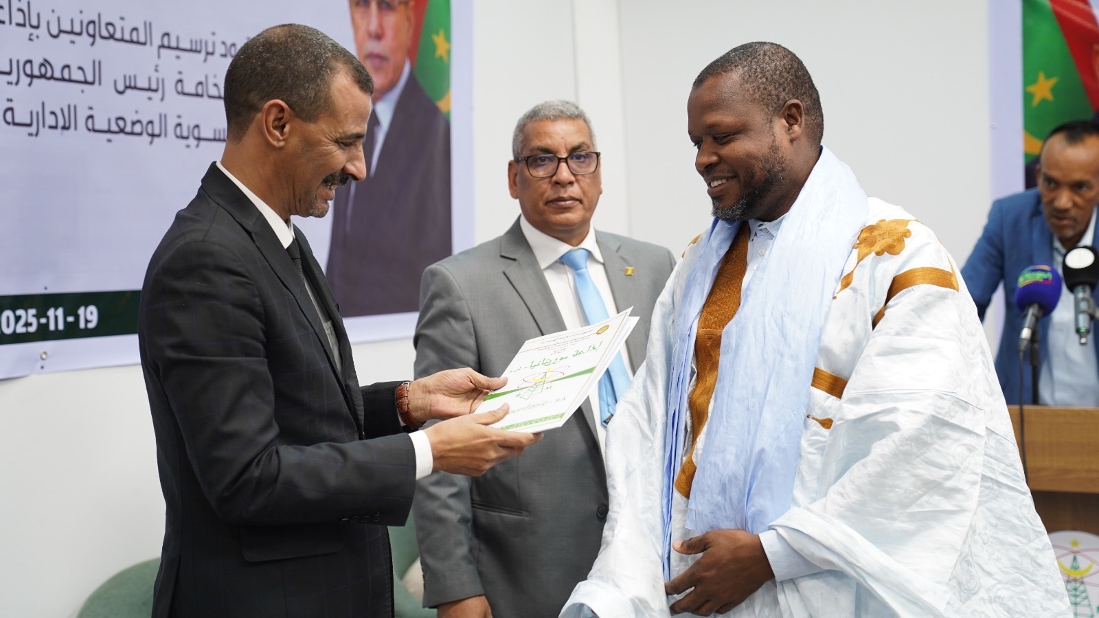 وأضاف ولد مدو خلال حفل ترسيم عمال إذاعة موريتانيا هذا الترسيم بأنه “يعبر عن التجسيد الفعلي للقرار التاريخي بكل مايحمله من معاني إعلاء قيم العدل، والإنصاف، والشجاعة، وإحقاق الحقّ، والاهتمام بالطبعة الاجتماعية، وتحسين ظروف العاملين بمؤسسات الإعلام العمومي”.
